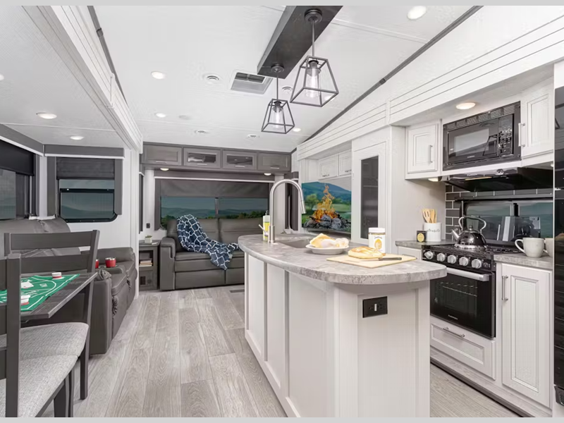 Keystone includes excellent innovation on each brand it produces, and the Cougar Half-Ton is no exception. You'll find a Climate Guard protection package, HyperDeck flooring, and HyperCore composite wall construction that is durable, water resistant and lighter. You'll love the residential, shaker style hardwood cabinet doors and drawers inside, along with night roller shades throughout, seamless, pressed countertops plus many more comforts.
