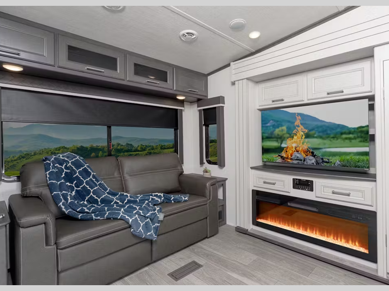 - LED HDTV in living area 12V Bluetooth® player with HDMI ARC control, 12v USB charging centers, & exterior TV hookup