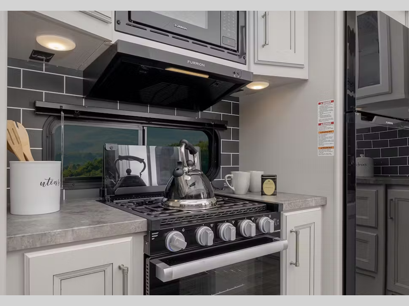 - 17" Furrion® range w/ Piezo ignition and glass stovetop cover