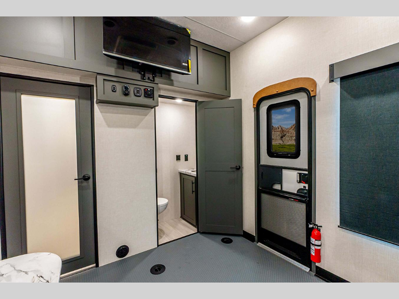 KZ Sportster X toy hauler fifth wheel 3914X highlights: Front Bedroom Bath and a ... more about Sportster X 3914X