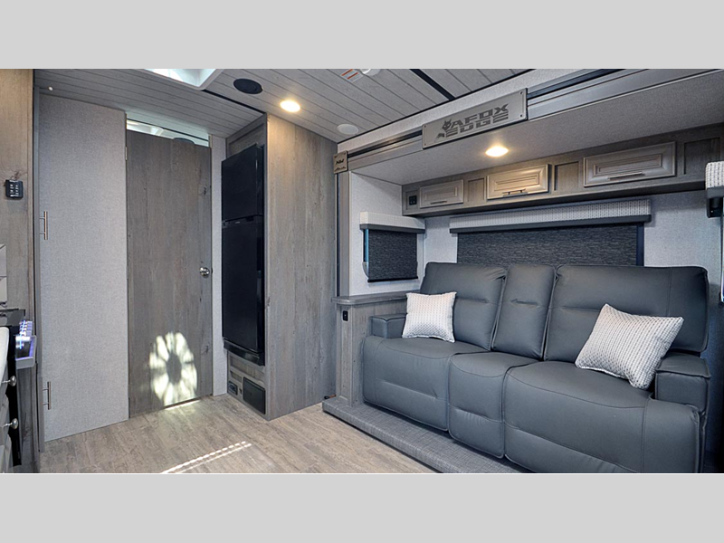 Sleeps 3 Slides 2 Length 29 ft 9 in Ext Width 8 ft 6 in Ext Height 11 ft 4 in Interior Color Moonstone, Carbon Hitch Weight 1065 lbs GVWR 12800 lbs Dry Weight 8385 lbs Cargo Capacity 4415 lbs Fresh Water Capacity 100 gals Grey Water Capacity 90 gals Black Water Capacity 55 gals Tire Size 16" Furnace BTU 30000 btu Available Beds King Refrigerator Type 12V Refrigerator Size 10 cu ft Cooktop Burners 3 Number of Awnings 1 Axle Weight 7320 lbs LP Tank Capacity 80 lbs Water Heater Capacity 10 gal Water Heater Type DSI Gas/Electric Quick Recovery AC BTU 13500 btu TV Info LR 32" 12V LED TV Awning Info LED w/Adjustable Pitch and FLXguard Axle Count 2 Shower Type Standard Solar Wattage 1000 watts Similar Floorplans